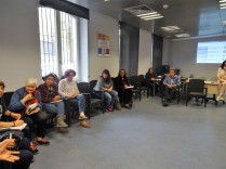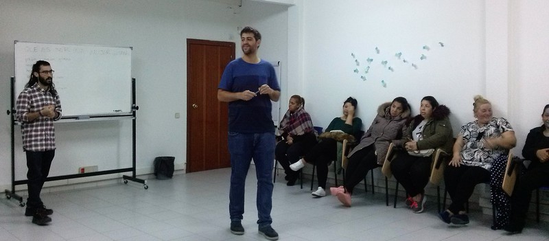 Enrique y Hugo, Técnicos Comunitarios del Servicio de Convivencia Intercultural en Barrios (dispositivo impulsado desde la Dirección general de Igualdad de Oportunidades del Ayuntamiento de Madrid que gestiona La Rueca Asociación) impartieron un taller formativo/ a las mujeres de la Asociación para sensibilizar, prevenir conflictos, valorar la diversidad cultural y desmontar rumores o tópicos racistas que afectan a la convivencia entre vecinas/os. Que ningún grupo cultural, étnico o de identidad diferente quede invisibilizado, silenciado o esteriotipado.