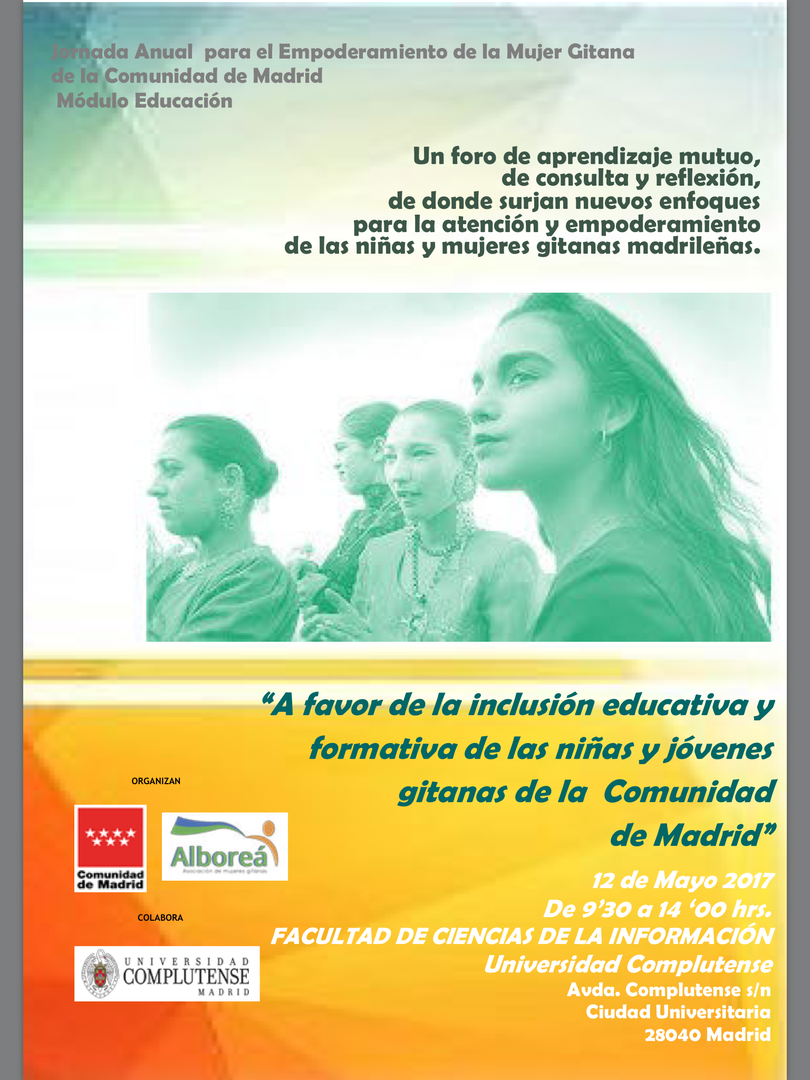 Con el tema centrado en la educacion y formacion de las niñas y jovenes, se aborda el aspecto mas importante para el empoderamiento efectivo de la mujer gitana. Con este evento se pretende abrir un foro de consulta para tratar este tema con una perspectiva diferente y desde donde se exprese tambien el punto de vista de la comunidad gitana, no muy tratado desde una optica tan abierta y directa, iniciandose un foro de intercambio mutuo para la mejor consecucion de los objetivos de desarrollo previstos en el Plan Operativo de Inclusion de la Comunidad Gitana Madrileña.